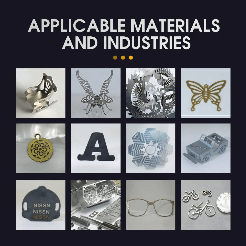 مناسبة للفولاذ المقاوم للصدأ والألومنيوم والتيتانيوم والذهب والنحاس والبلاستيك الصلب والسيراميك.